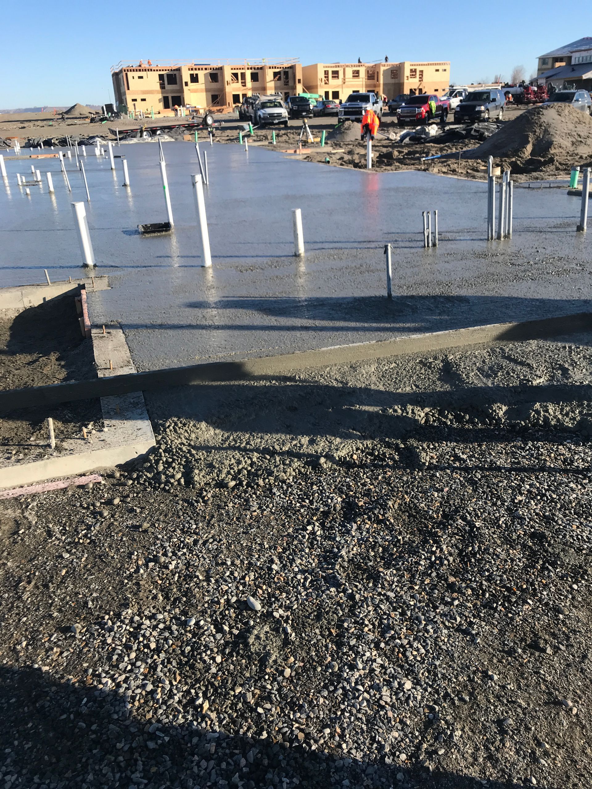 The work does not include electrical conduit placement, plumbing rough-ins, or insulation installation. Those trades coordinate around the foundation schedule. Our role is to deliver a stable, level, reinforced concrete base that meets or exceeds the load requirements for your building. Every project follows the same preparation standards regardless of size.